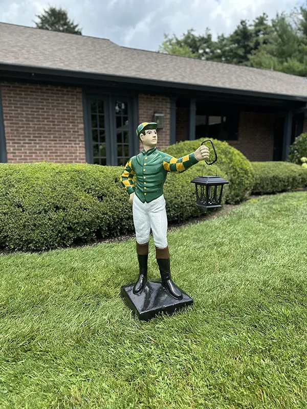 Whether placed at an estate entrance, commercial property, clubhouse, or storefront, a Riders Up lawn jockey delivers unmistakable curb appeal and timeless heritage.