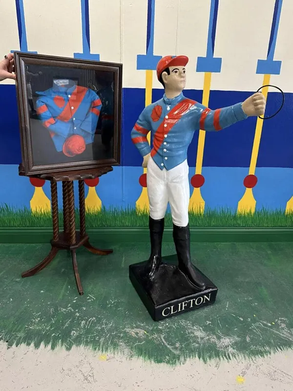 The best Christmas surprise ever for my husband. Riders Up Custom Jockeys are truly one of a kind. I’ve been searching for years and finally found high quality work when I found Katy. She was super patient throughout the brainstorming process and the final product is absolutely gorgeous. I highly recommend a custom piece for your home. My husband now wants 3 more.