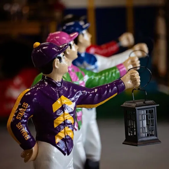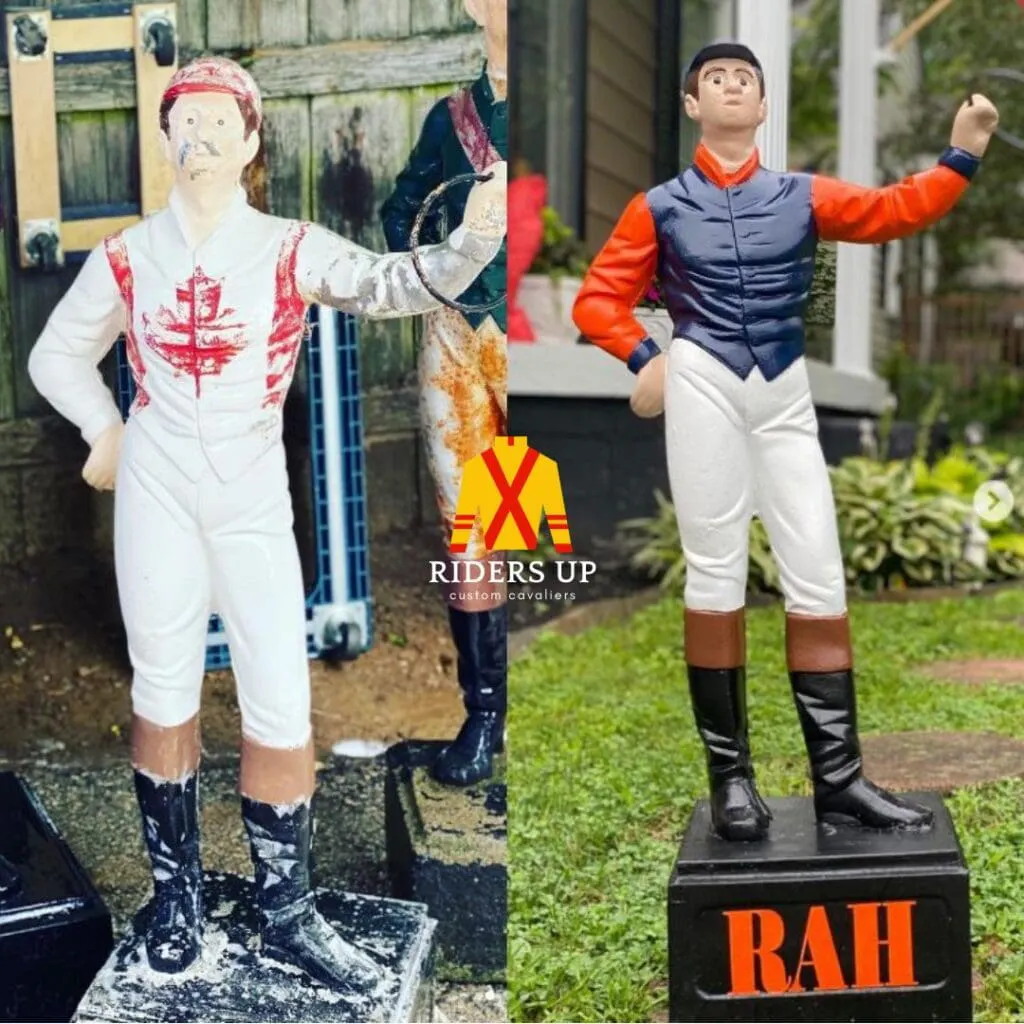 The best Christmas surprise ever for my husband. Riders Up Custom Jockeys are truly one of a kind. I’ve been searching for years and finally found high quality work when I found Katy. She was super patient throughout the brainstorming process and the final product is absolutely gorgeous. I highly recommend a custom piece for your home. My husband now wants 3 more.